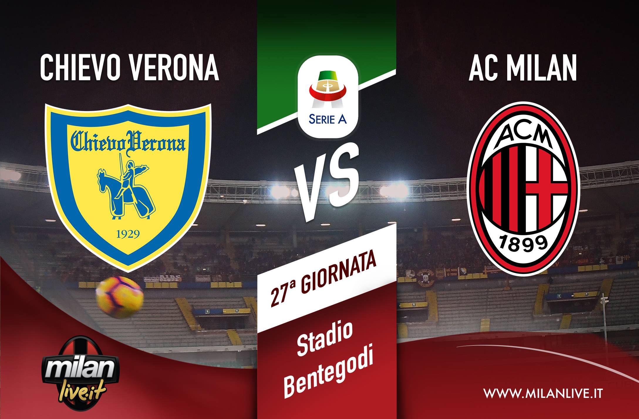 CHIEVO MILAN – Tutto pronto al ‘Marcantonio Bentegodi’ per Chievo–Milan. A Verona si gioca l’anticipo della 27° giornata di Serie A. I rossoneri sono obbligati a vincere per mantenere il terzo posto e arrivare al derby con questa situazione di classifica.