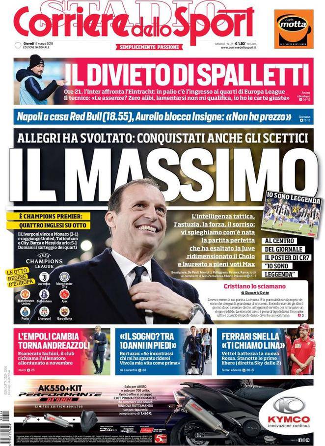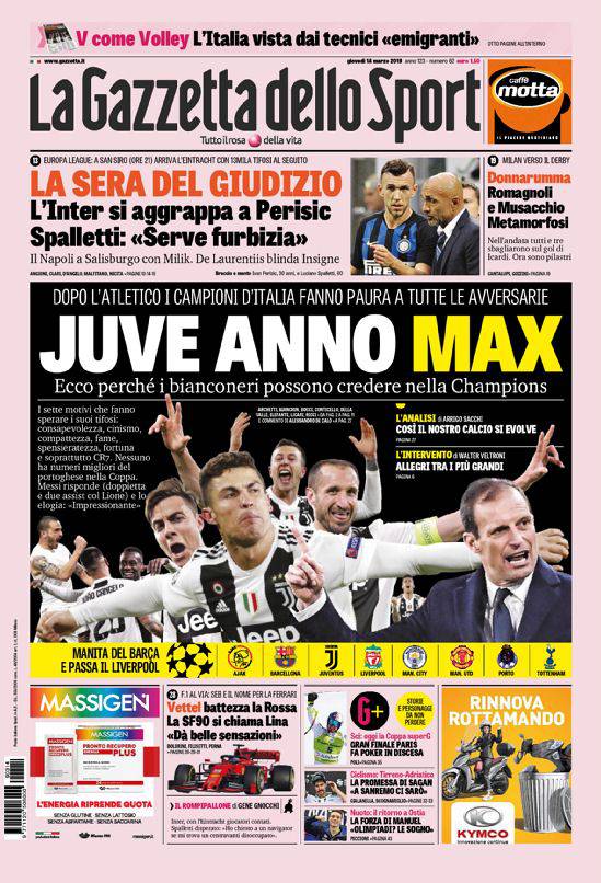 Gazzetta, Corriere dello Sport, Tuttosport: prime pagine 14 marzo 2019 14/03/2019 - 10:2214/03/2019 - 08:14 di Matteo B.