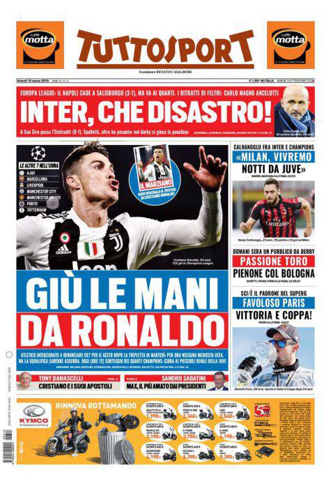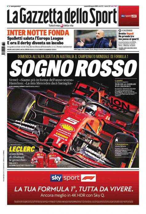 Gazzetta dello Sport, CorSport, Tuttosport: prime pagine del 15 marzo 2019 15/03/2019 - 08:03 di Pasquale Cacciola