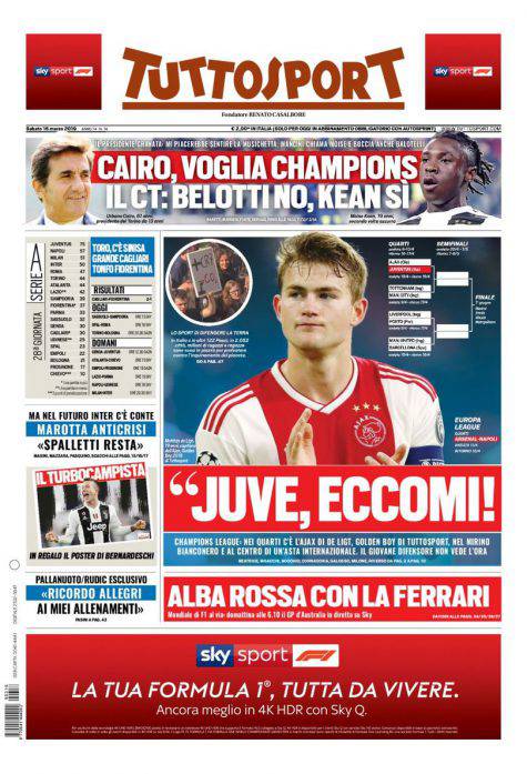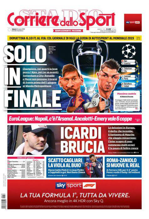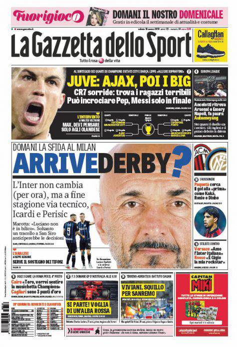 Gazzetta dello Sport, CorSport, Tuttosport: prime pagine del 16 marzo 2019 16/03/2019 - 08:00 di Pasquale Cacciola