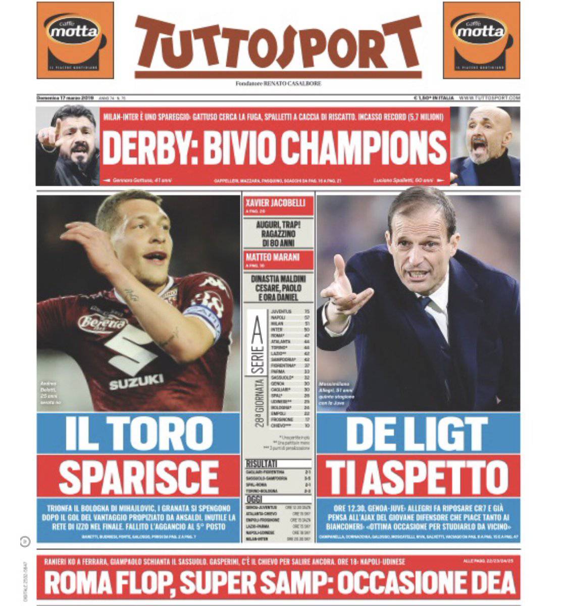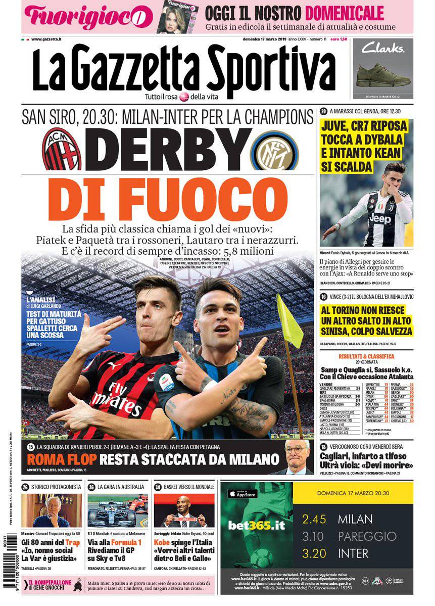 Gazzetta dello Sport, Corsport, Tuttosport: prime pagine del 17 marzo 2019 17/03/2019 - 08:14 di Keivan Karimi