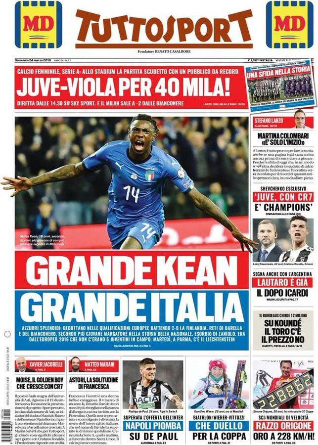 Gazzetta dello Sport, Corsport,Tuttosport: prime pagine del 24 marzo 2019 24/03/2019 - 09:07 di Keivan Karimi