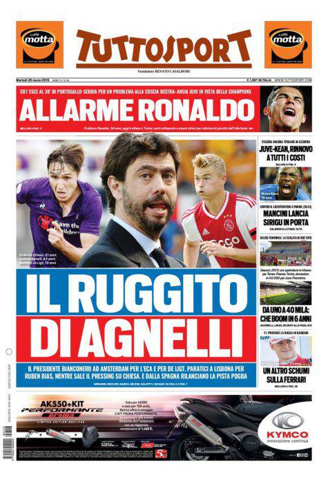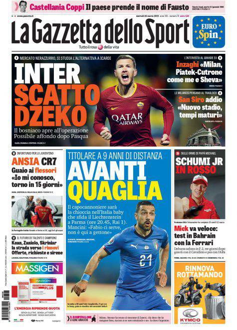 Gazzetta dello Sport, CorSport, Tuttosport: prime pagine del 26 marzo 2019 26/03/2019 - 08:00 di Pasquale Cacciola
