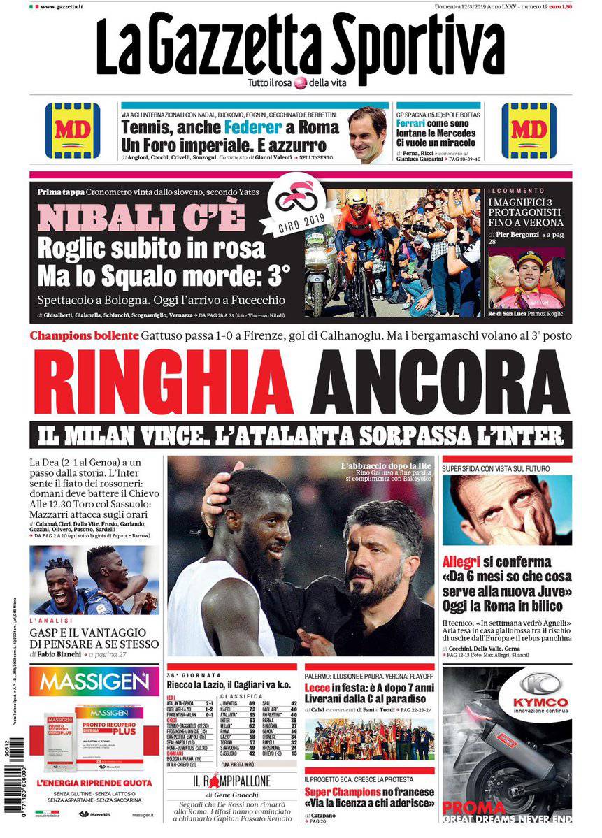 Gazzetta dello Sport, Corsport, Tuttosport: prime pagine del 12 maggio 2019 12/05/2019 - 08:31 di Keivan Karimi