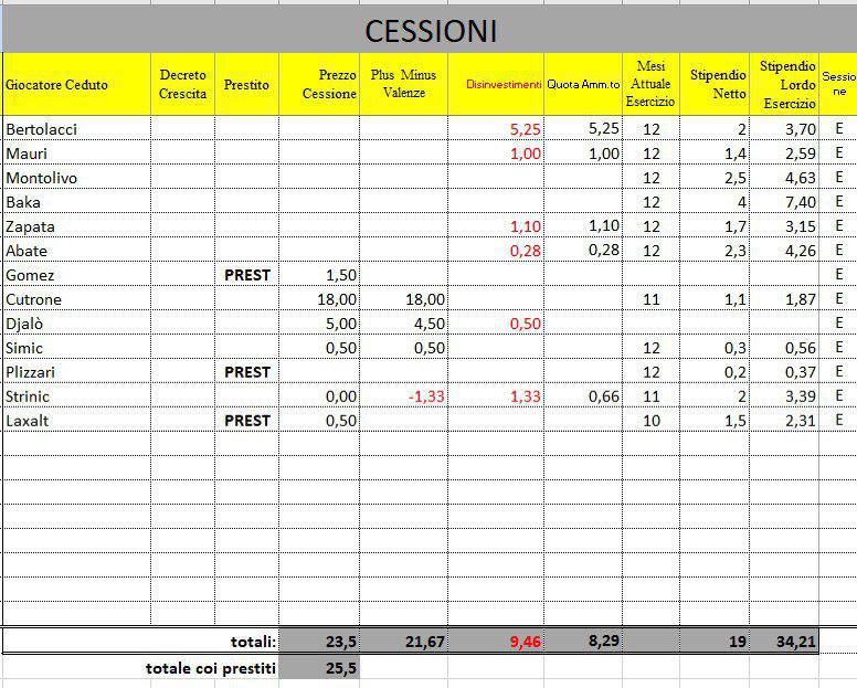 Arrivati a questo punto è necessario rilevare che, pur senza la risoluzione di Strinic ed il prestito di Laxalt, manovre che hanno permesso qualche ulteriore risparmio, la situazione complessiva registrava, ad incremento del fatturato finale tra plusvalenze e ricavi da cessioni temporanee, circa +25.