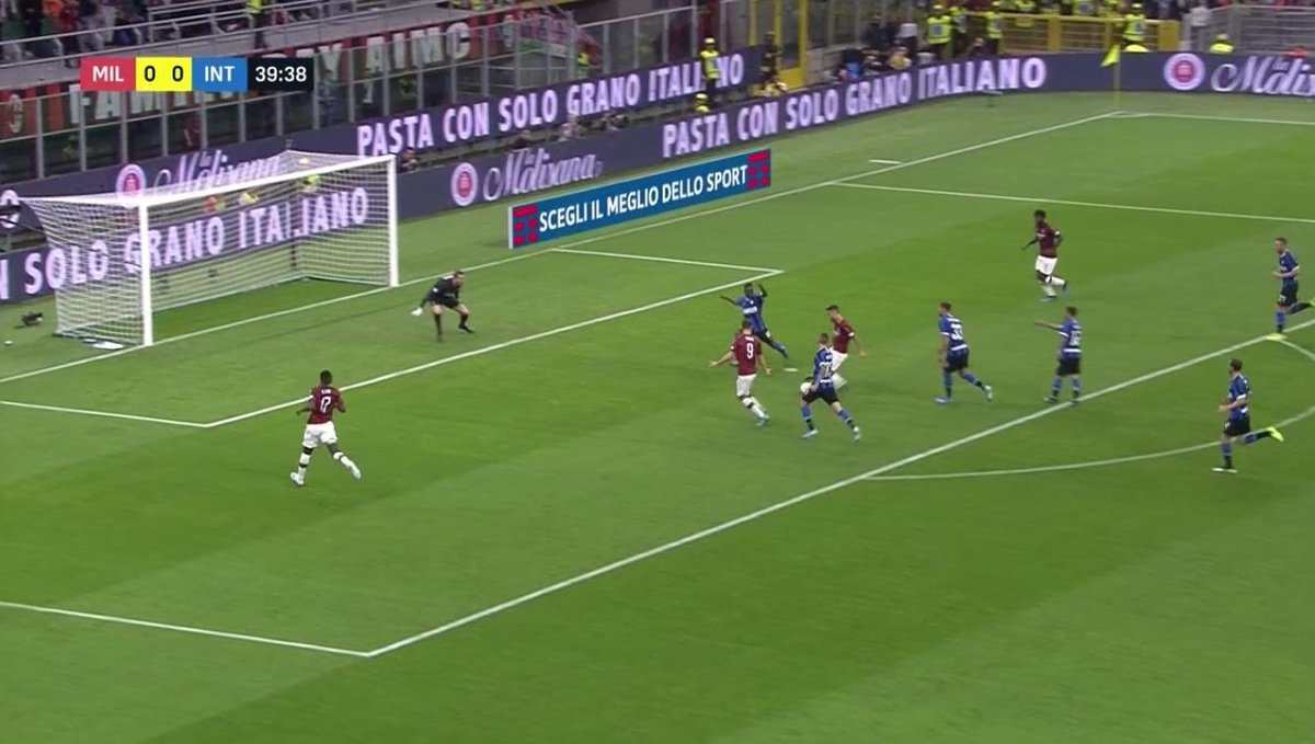 Un tentativo alla disperata del difensore nerazzurro che ha salvato la porta di Samir Handanovic. Ma Suso si mostra clamorosamente ingenuo ed egoista perché poco prima del tiro aveva a disposizione tre compagni, tutti piazzati meglio di lui e soprattutto senza l’avversario davanti.