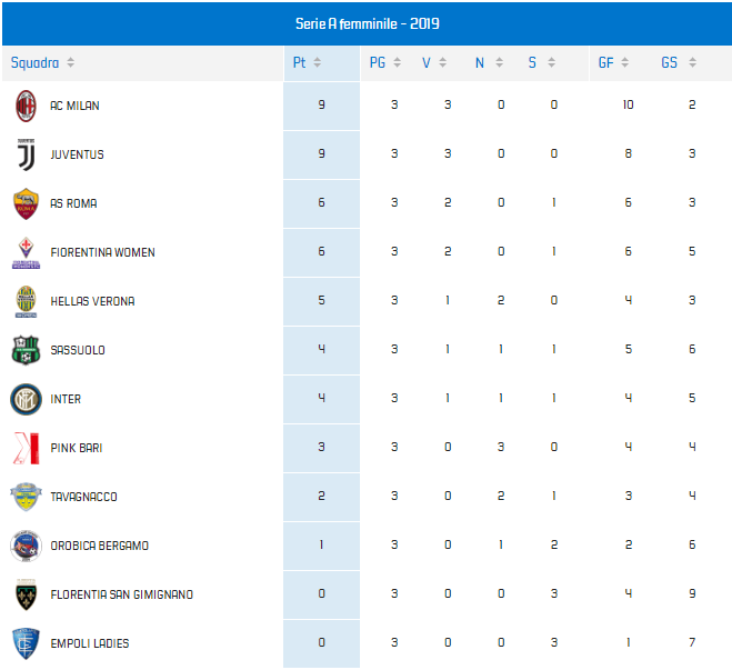 Il Milan femminile mantiene la testa della classifica della Serie A femminile. Con la vittoria del primo storico derby, 3-1 contro l’Inter, le rossonere vanno a quota 9 punti.