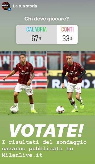Sono stati tanti i tifosi rossoneri e nostri lettori a rispondere sui nostri social Twitter, Facebook e Instagram. Numerosi commenti e interazioni, anche spunti di riflessione sul modulo da adottare proprio relativamente alla scelta di uno dei due terzini. Non era una scelta scontata, anche se su tutti i nostri social la risposta che ha ottenuto la maggioranza dei voti è stata unanime.