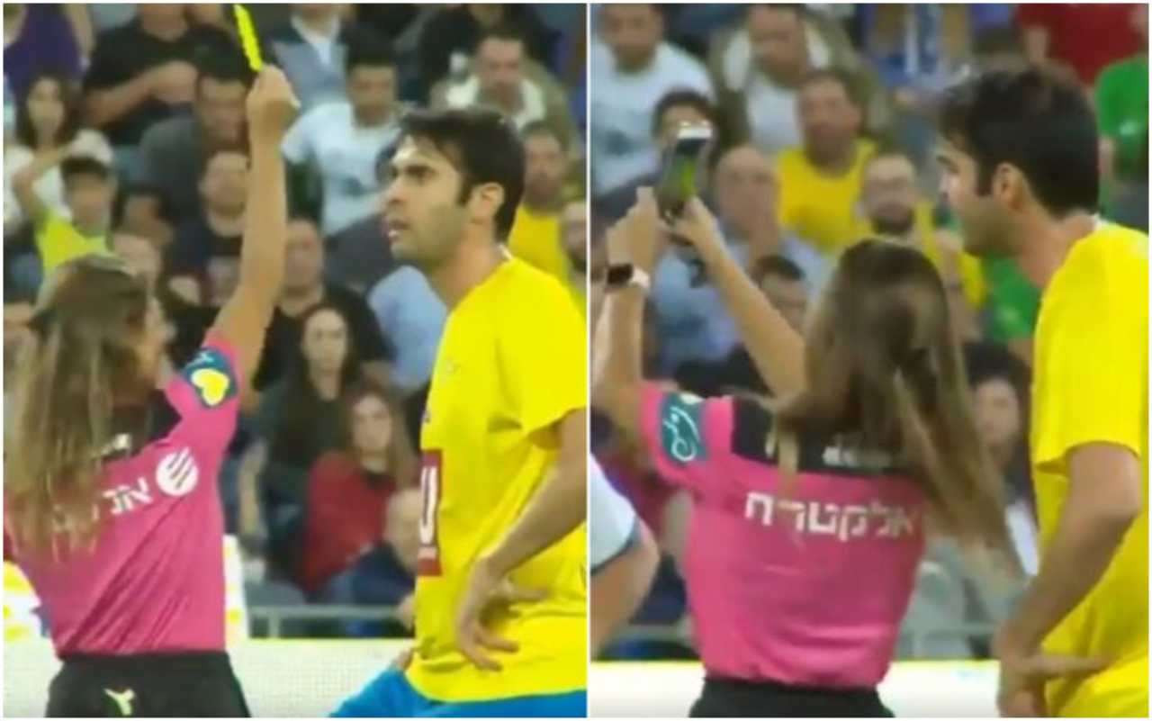 Partita di beneficienza tra le leggende del Brasile e di Israele. Nel secondo tempo l’episodio curioso: l’arbitro donna ferma il gioco e ammonisce Kakà. Tra le perplessità generali, e soprattutto dello stesso brasiliano. Ma la direttrice di gara, mette giù il cartellino e tira fuori lo smartphone. Spiega l’accaduto e scatta un “selfie” con l’idolo.