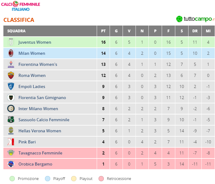Un punto “VITALE” per le rossonere in classifica: sono 14 i punti in classifica del Milan femminile, distacco di 2 punti in meno invariato dalla Juve, a quota 16. Ecco la foto della classifica aggiornata: