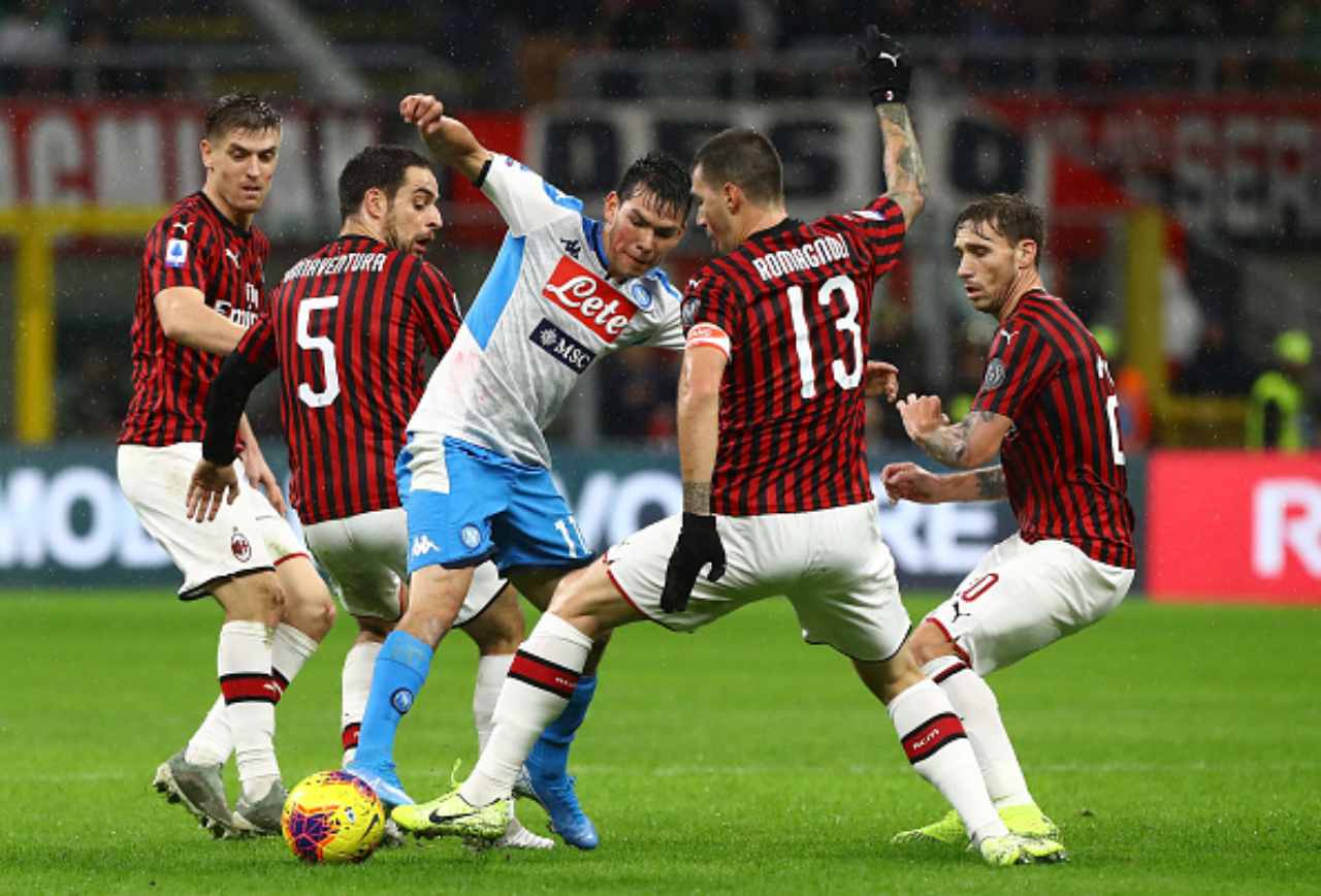 PRIMO TEMPO – Parte bene il Milan nel primo quarto d’ora, con pressing ben fatto. Non vengono sfruttati a dovere gli errori tecnici del Napoli, che ingrana poco dopo e trova il gol, fortunoso, con Hirving Lozano: colpo di testa vincente dopo la traversa di Insigne.