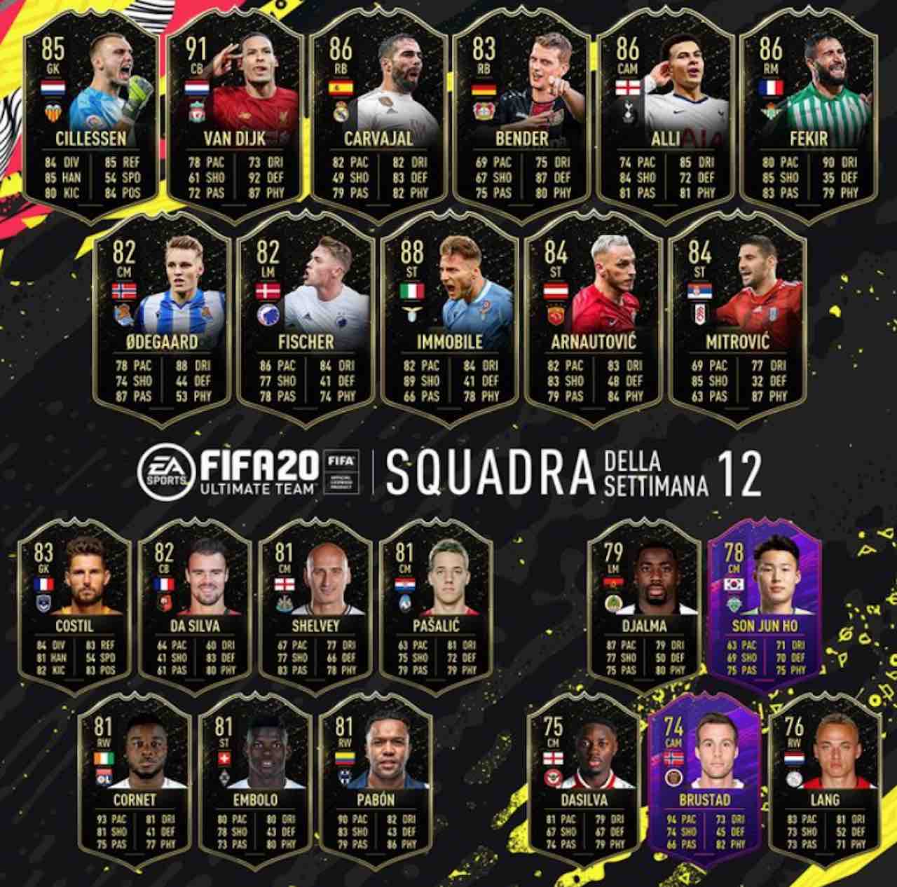 Il difensore olandese ha una valutazione di 91 ed è sicuramente il giocatore più ambito. Due giocatori della Serie A presenti: Ciro Immobile, proposto con un incredibile 88, e Mario Pasalic, l’ex Milan oggi in forza all’Atalanta con un 81. Ecco, di seguito, la schermata con l’intera squadra della settimana di questo mercoledì 4 dicembre: