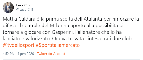 E con il passare dei giorni la trattativa è andata avanti. Secondo il giornalista di Sportitalia Luca Cilli, il difensore avrebbe detto sì alla possibilità di un ritorno all’Atalanta: “Mattia Caldara è la prima scelta dell’Atalanta per rinforzare la difesa. Il centrale del Milan ha aperto alla possibilità di tornare a giocare con Gasperini, l’allenatore che lo ha lanciato e valorizzato. Ora va trovata l’intesa tra i due club”.