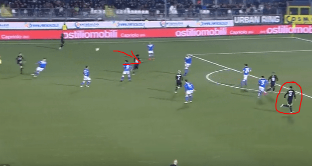 L’azione del gol parte proprio da un suo movimento particolare e fondamentale. Ibrahimovic, che di solito stazione al centro dell’area avversaria, si allarga sulla corsia destra, alle spalle del terzino bresciano Mateju. Lo svedese fa così perdere le sue tracce e detta il passaggio profondo a Calhanoglu.