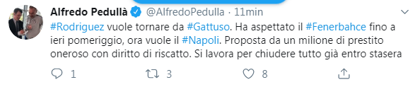 La conferma della trattativa è arrivata da Alfredo Pedullà. Il giornalista esperto di calciomercato ha scritto oggi che l’affare Rodriguez può chiudersi in serata.