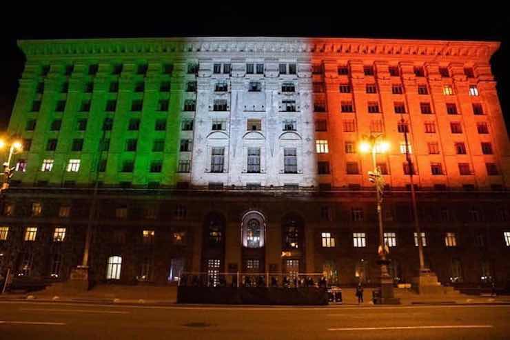 Lo è anche l’Ucraina, come dimostrato da Andriy Shevchenko nella foto pubblicata su Facebook in questi minuti. Il City Hall di Kiev, municipio della città, infatti, è stato vestito col tricolore italiano. Un bel gesto da parte di tutta l’Ucraina.