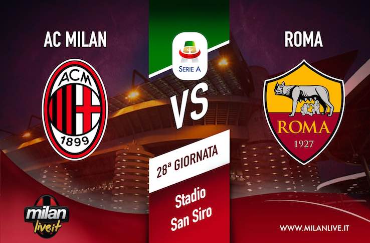 Tutto pronto a San Siro per Milan–Roma, il match valido per la 29^ giornata di Serie A. I rossoneri, ancora privi di Zlatan Ibrahimovic che non è stato convocato, tornano al Giuseppe Meazza dopo tanto tempo.