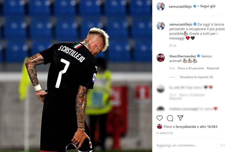 L’esterno offensivo rossonero sul suo profilo ufficiale Instagram ha pubblicato un post riguardante l’infortunio e la sua voglia di rientrare quanto prima. Queste le sue parole: «Da oggi si lavora pensando a recuperare il più presto possibile. Grazie a tutti per i messaggi». Ti aspettiamo Samu!