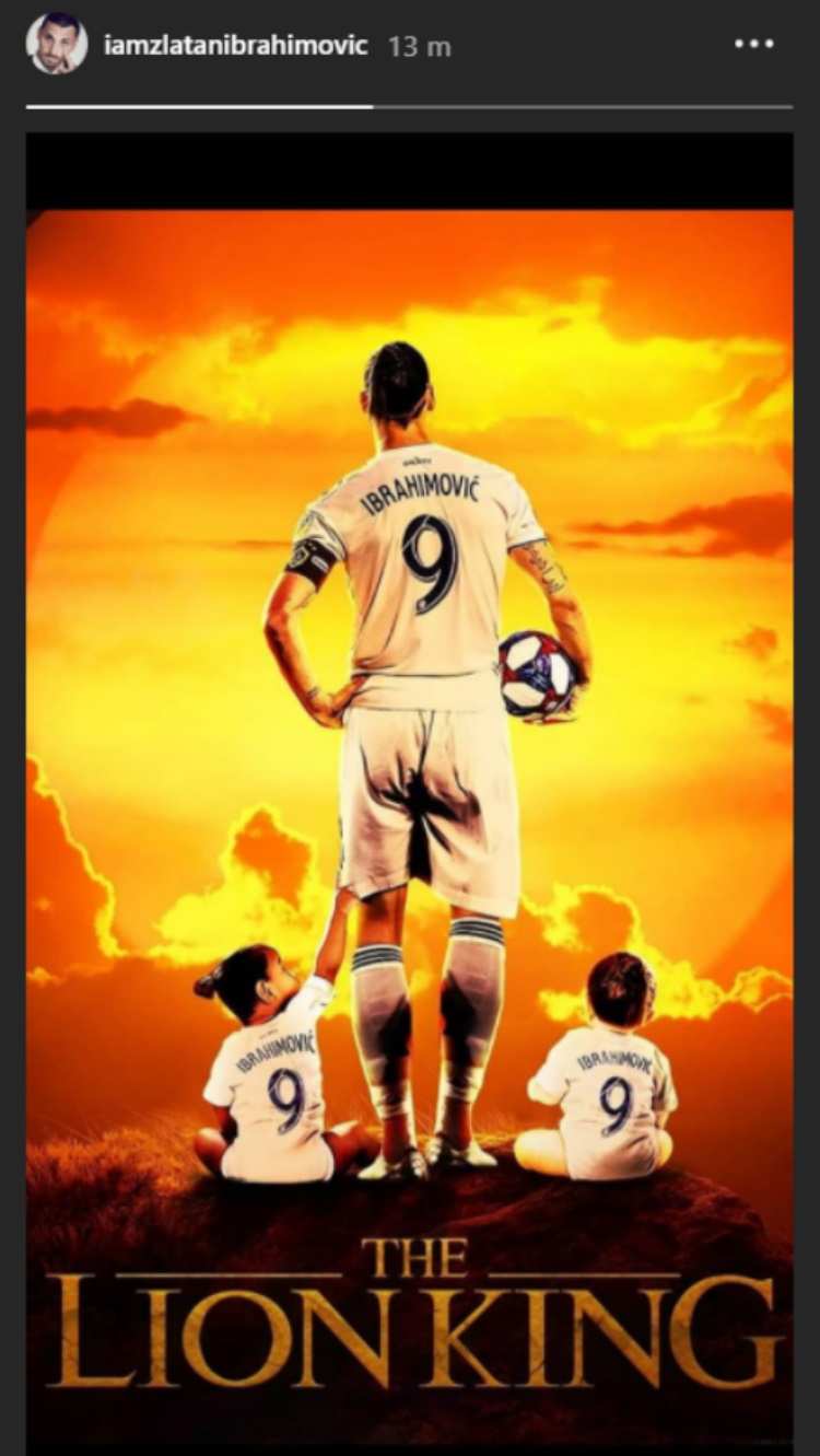 Zlatan Ibrahimovic ha pubblicato una storia sul proprio profilo ufficiale Instagram e nella foto che lo raffigura c’è scritto “The Lion King”, ovvero “Il Re Leone”. Non è la prima volta che il centravanti svedese pubblica un’immagine ispirandosi al noto film d’animazione.