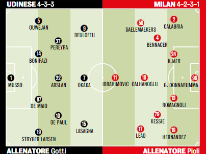 L’Udinese di mister Gotti è pronta invece a cambiare. Schieramento più offensivo per i friulani, che dovrebbero optare su un 4-3-3 inedito.
