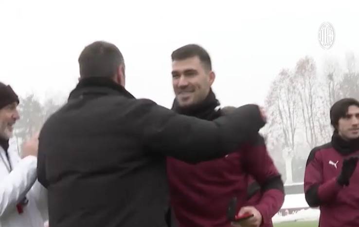 Maldini ha conferito ad Alessio una medaglia, simbolo dell’obiettivo raggiunto. Felice anche tutta la squadra che insieme a Pioli hanno festeggiato il compagno con applausi e urla.