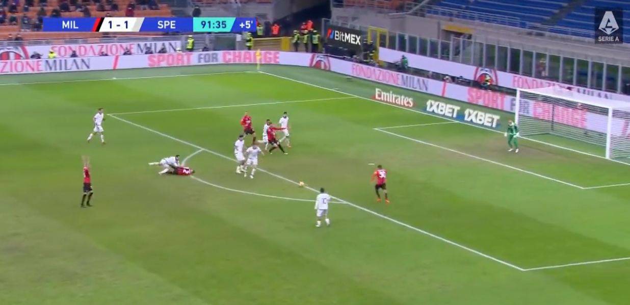 Ha dell’incredibile quanto successo nel finale di Milan-Spezia. Il Milan segna ma l’arbitro fischia una punizione al limite per i rossoneri