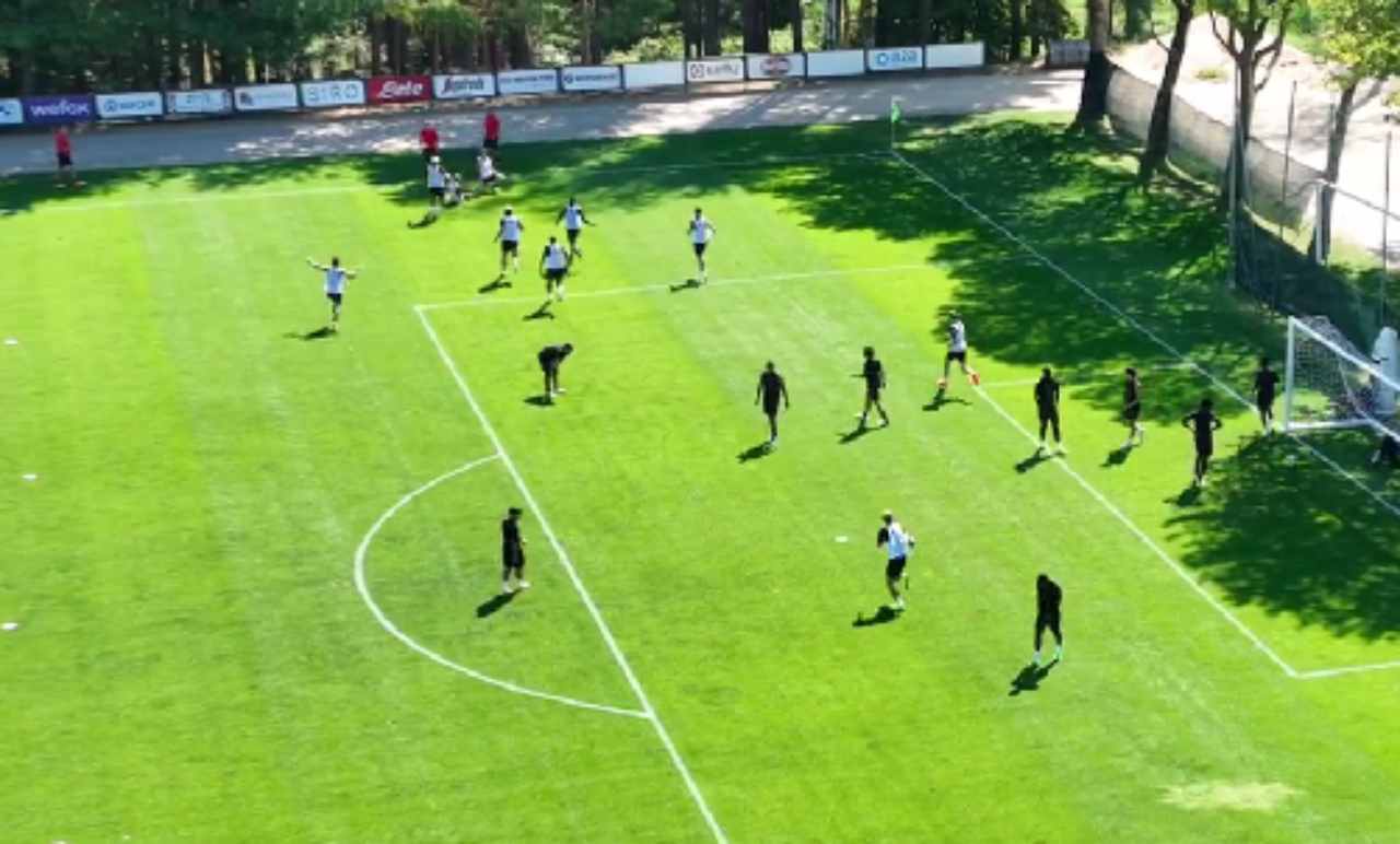 Il croato mette a segno un fantastico gol olimpico durante la partitella di allenamento e tutti i suoi compagni corrono ad abbracciarlo