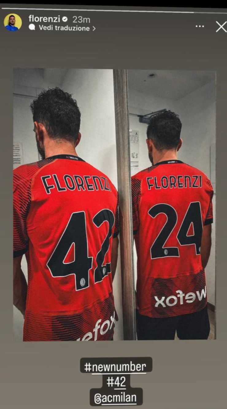 Florenzi sul suo account Instagram ha rivelato di aver cambiato numero di maglia. Nelle due precedenti stagioni con il Milan l’ex romanista ha indossato il 25 sulle spalle. Mentre per la stagione in divenire ha adottato il numero 42. Una scelta dettata dalla vicinanza numerica con il 24, che è da sempre il preferito del terzino.
