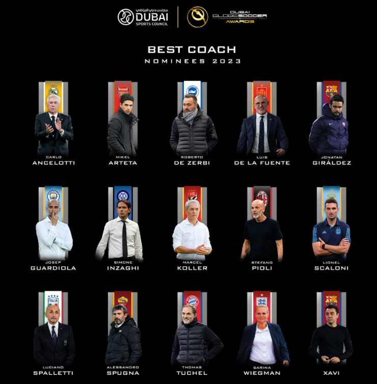 Pioli è in buona compagnia: in lizza con lui ci sono due fenomeni come Pep Guardiola e Carlo Ancelotti, ma anche altri tecnici italiani come Luciano Spalletti dopo il titolo conquistato con il Napoli, ma anche Roberto De Zerbi e Alessandro Spugna, che guida la Roma Femminile campione d’Italia.