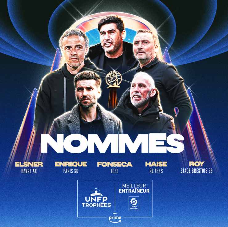 I colleghi con cui si contende il riconoscimento di “Meilleur Entraîneur” sono Luis Enrique del Paris Saint Germain, Franck Heise del Lens, Eric Roy del Brest e Luka Elsner del Le Havre. Il primo potrebbe essere il favorito, avendo vinto il campionato al suo primo anno in Ligue 1, anche se con la corazzata PSG il suo compito è stato agevolato.