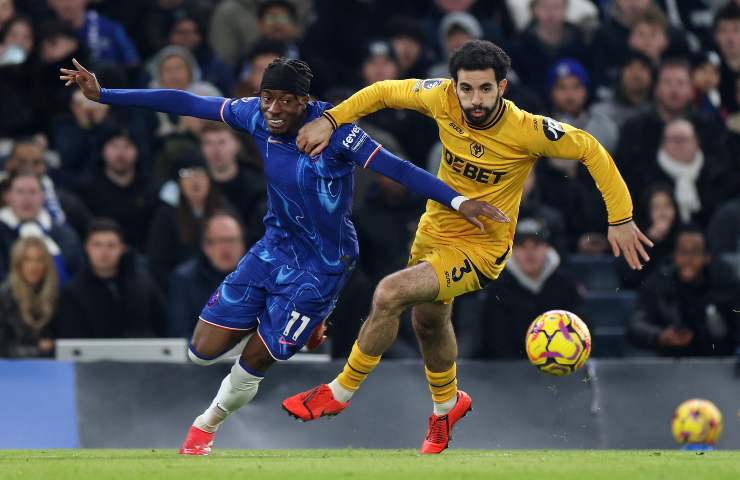 Ait Nouri terzino del Wolverhampton contrasta Madueke